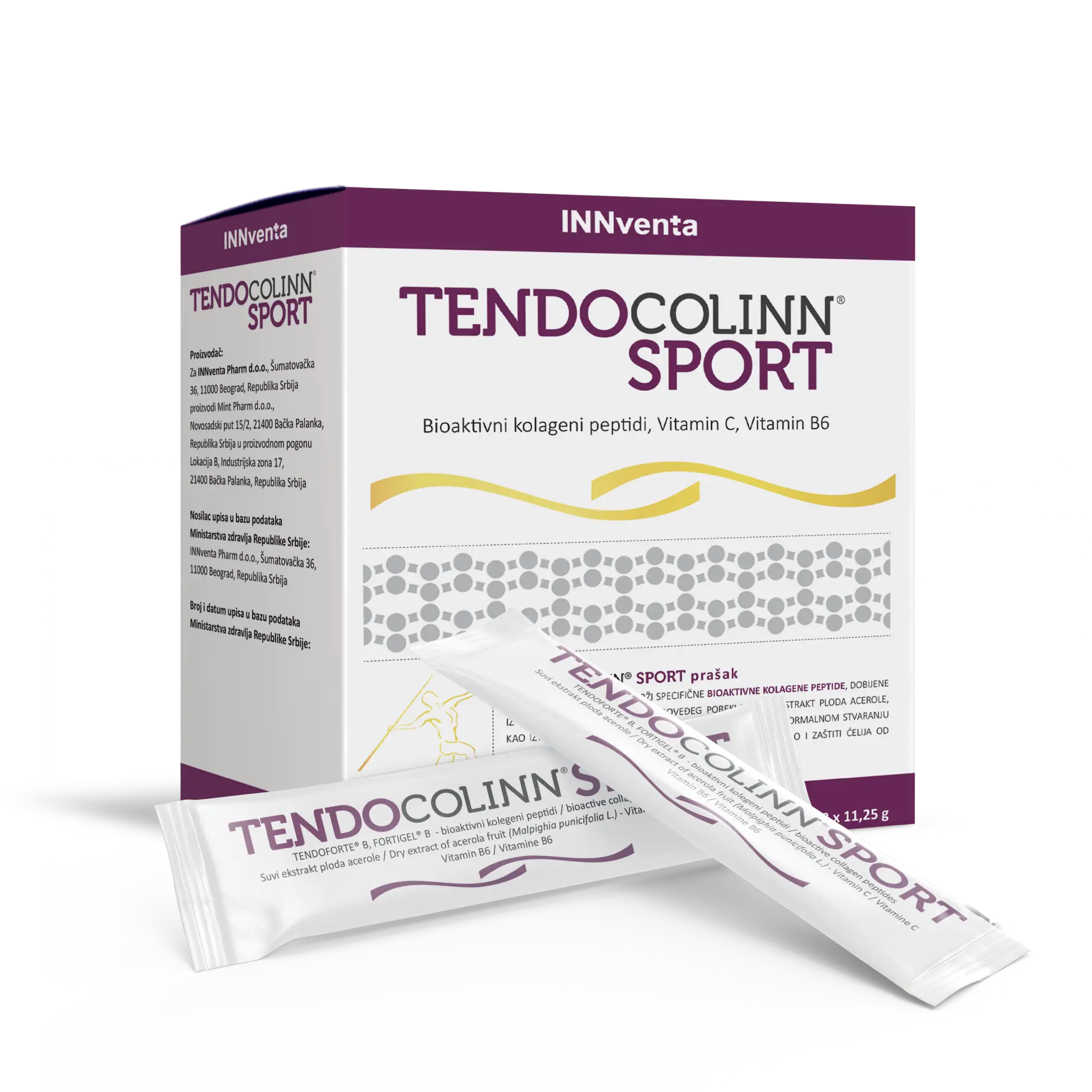 Tendocolinn® Sport je dodatak ishrani sa specifičnim bioaktivnim kolagenim peptidima dobijenim iz hidrolizovanog kolagena goveđeg porekla, vitaminom C i vitaminom B6.